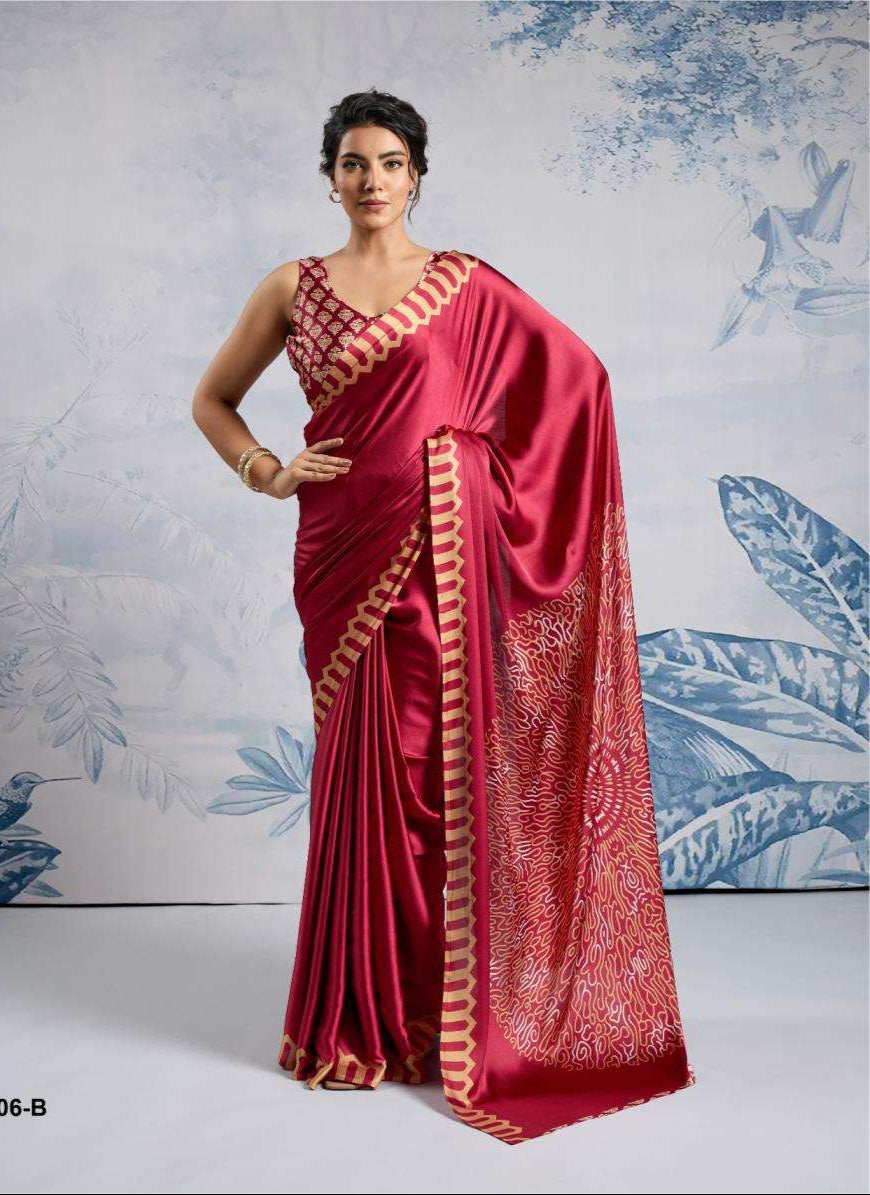 Red Modal Satin Silk Saree