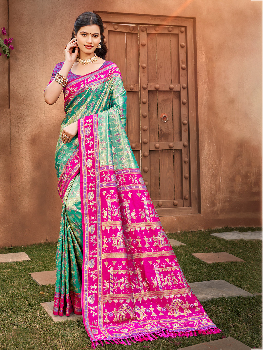 Such designs are interwoven into each saree so that it gets a deeper cultural meaning and appealing charm.