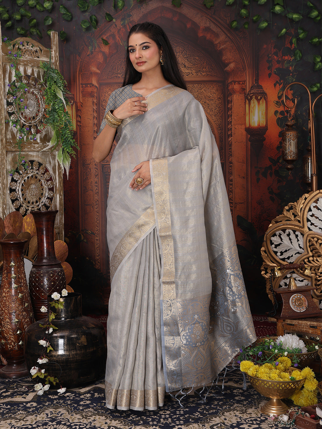 Grey Organza Saree