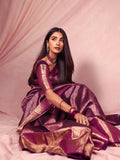 Pooja Hegde Inspired Elegant Royal Purple Tissue Silk Saree With Golden Zari Weave