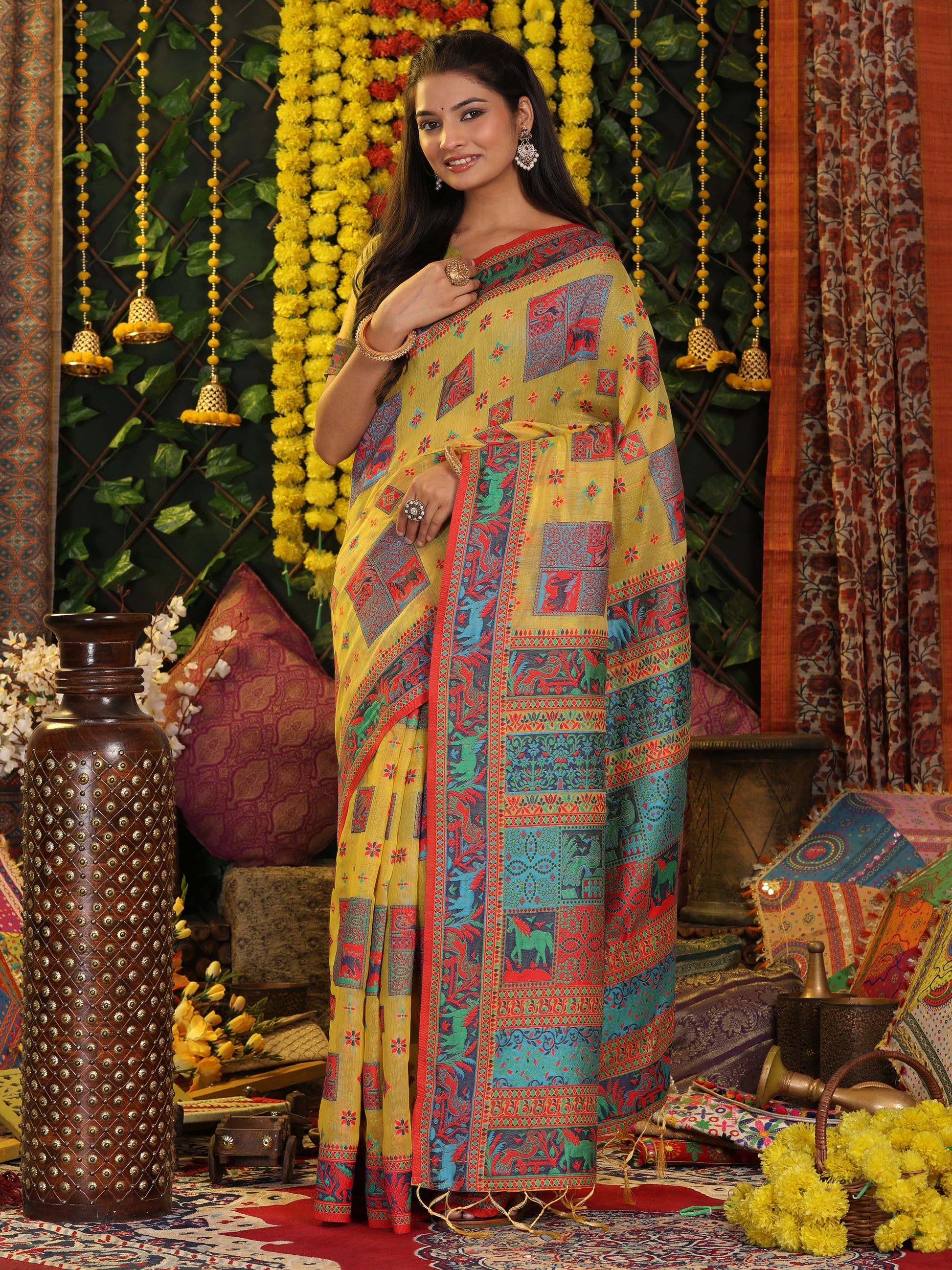Mustard Yellow Linen Cotton Saree
