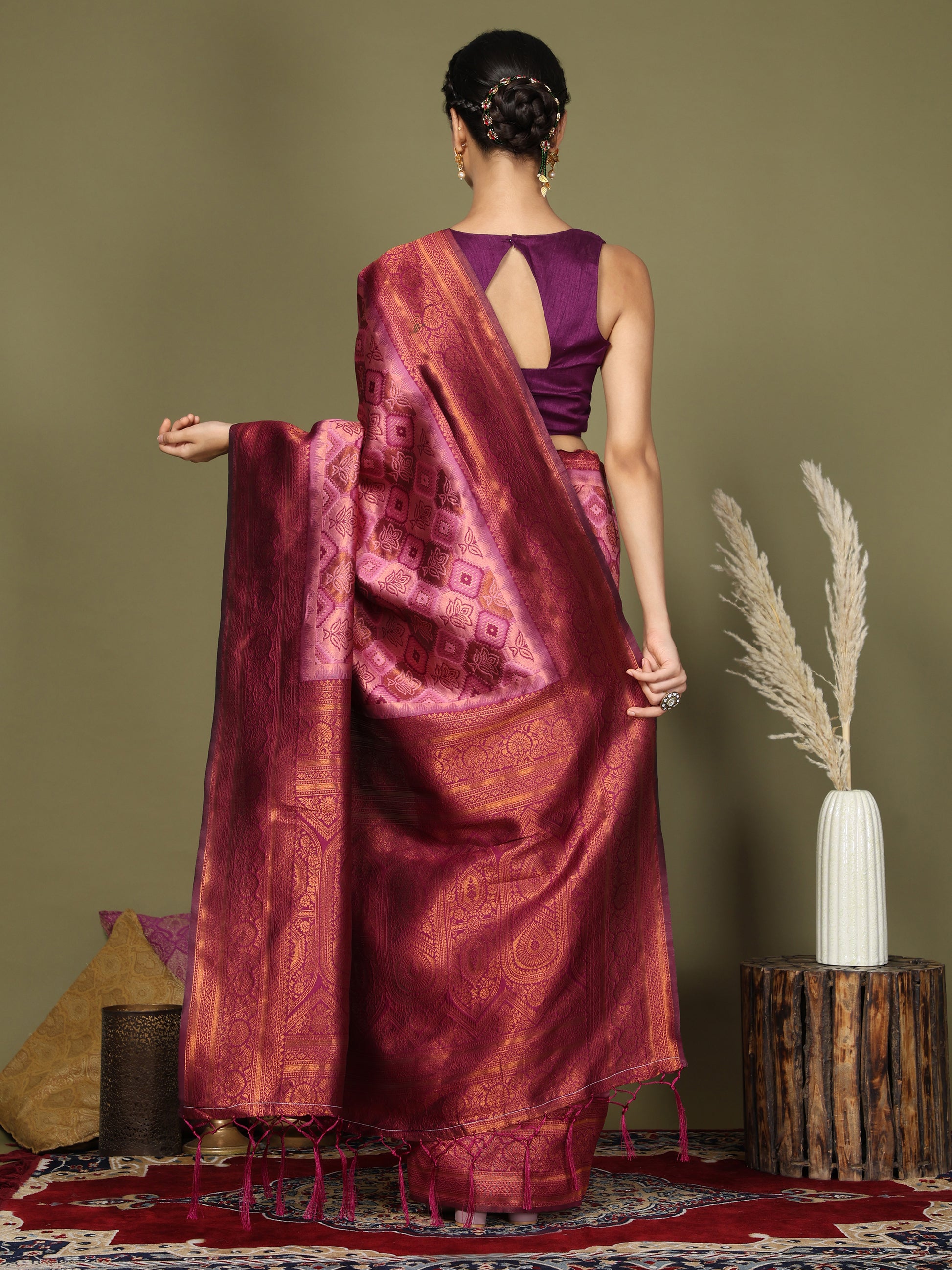Pink Litchi Silk Saree