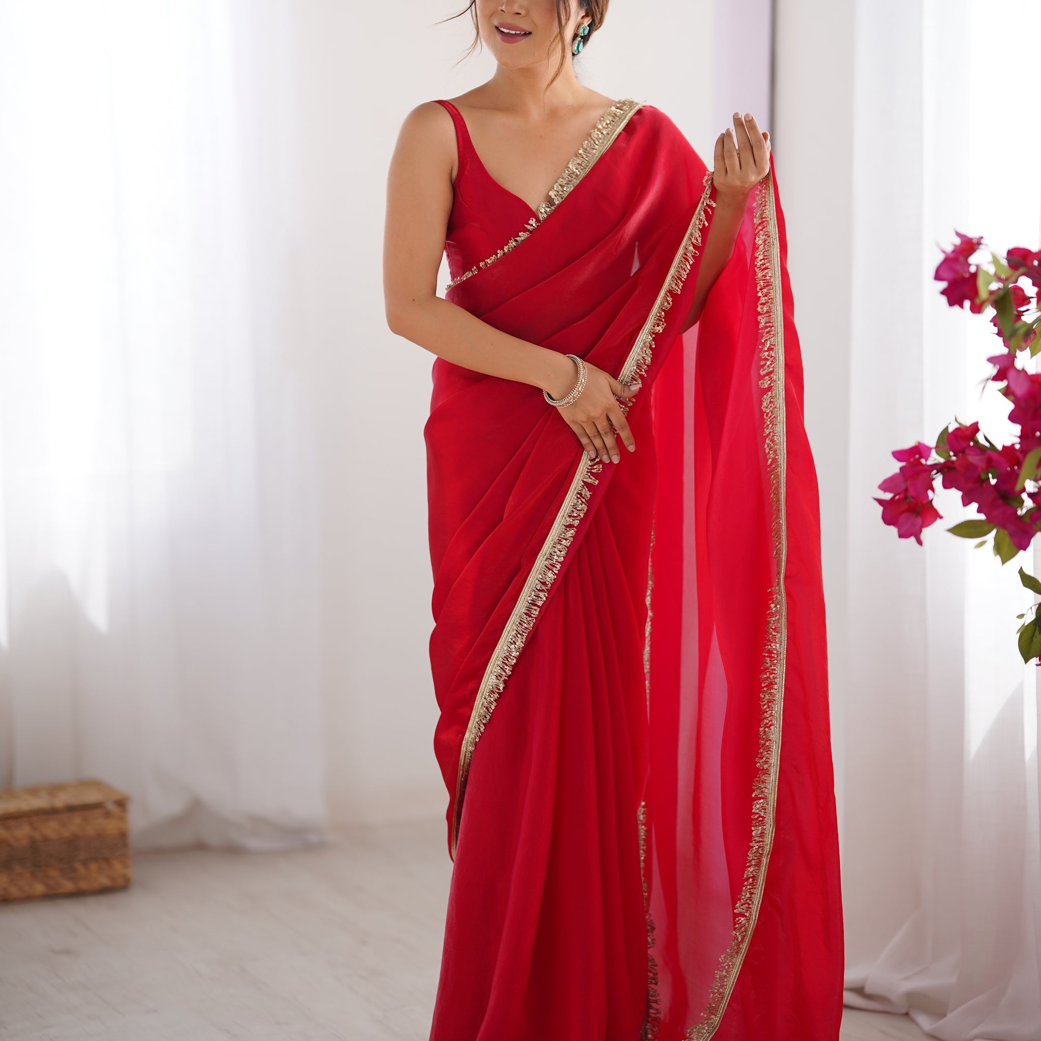 Red Fendy Satin Saree
