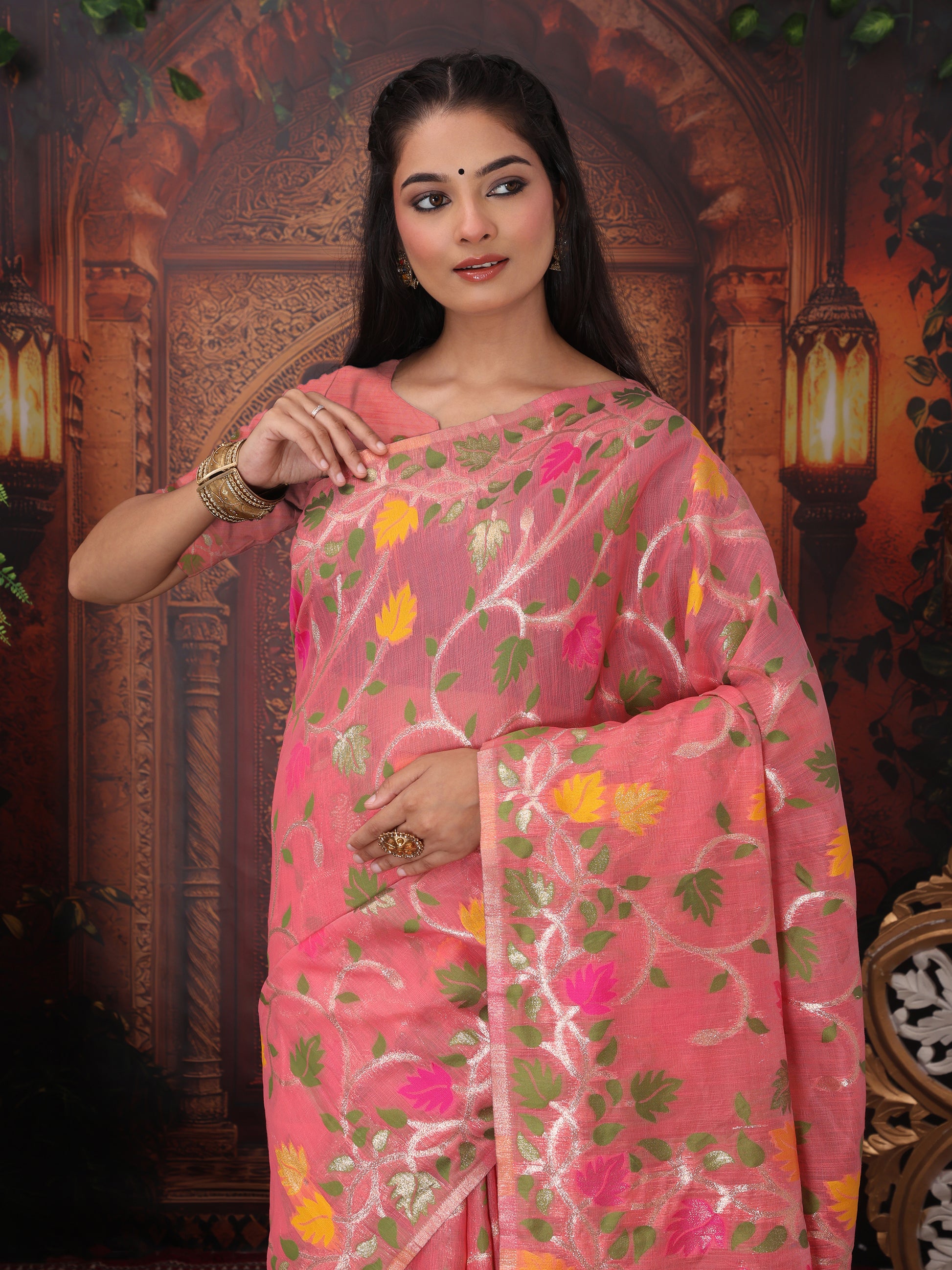 Peach Linen Cotton Saree