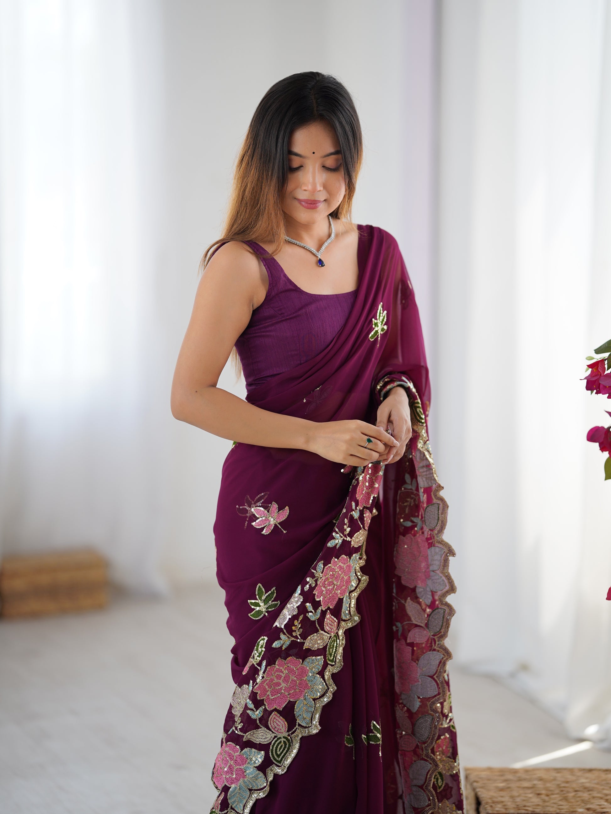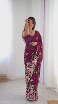 Wine Color Georgette Saree